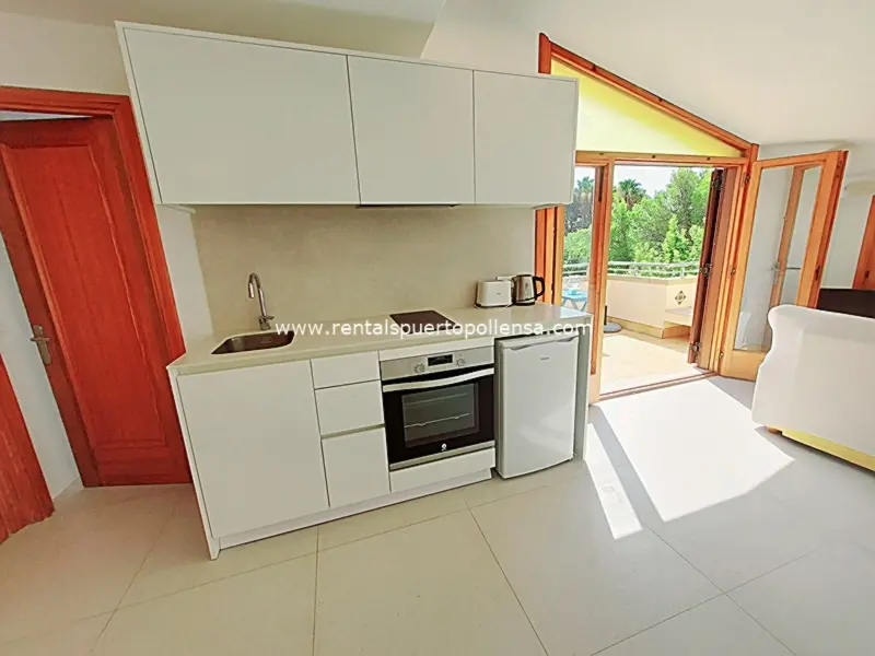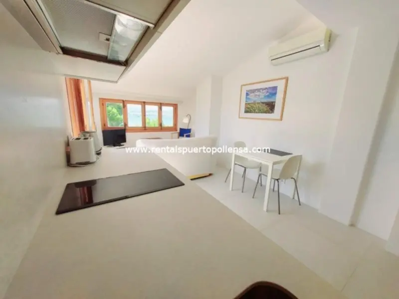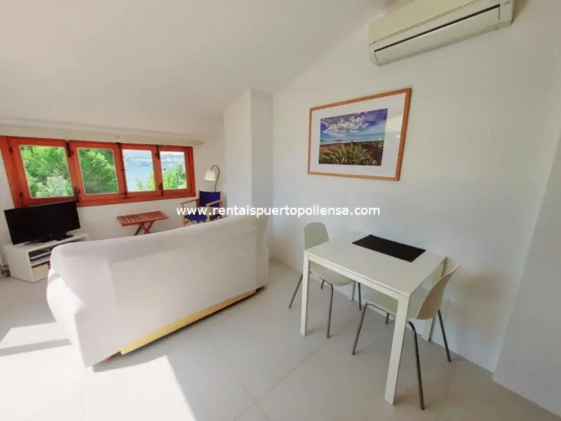 This third floor apartment has a bedroom with a double bed (150cm x 200cm), a modern shower room with WC and a modern kitchen with oven/hob, fridge freezer and microwave. The lounge/dining room has air conditioning, a television and double doors which open onto a private terrace with beautiful sea views.