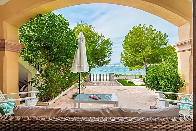 Situated directly on Puerto Pollensa's Pine Walk, the exterior of Casa Faro boasts a large covered stone arched terrace with calming sea views as well as a garden area with two sun loungers. Enjoy the fully furnished terrace at the sea front in a very peaceful location.