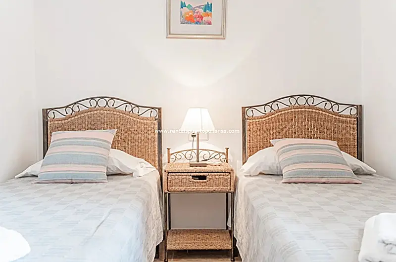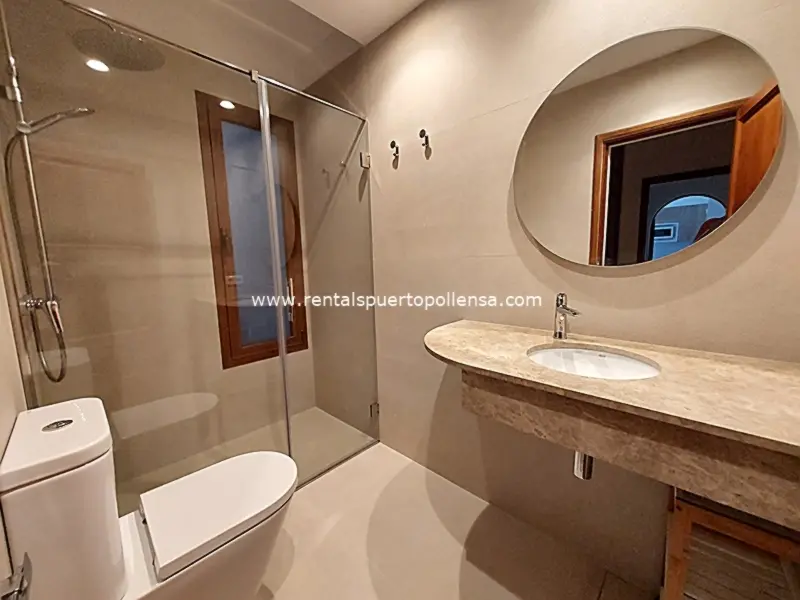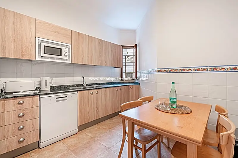 The air-conditioned lounge/dining room is comfortably furnished and has views to the terrace and sea. Patio doors lead from the lounge to the front terrace which is fully furnished with dining table and chairs as well as an additional seating area. The fitted kitchen leads off from the dining area and comes complete with oven/hob, fridge/freezer, microwave and dishwasher. There is a washing machine located in a small laundry for your convenience. WIFI provided.