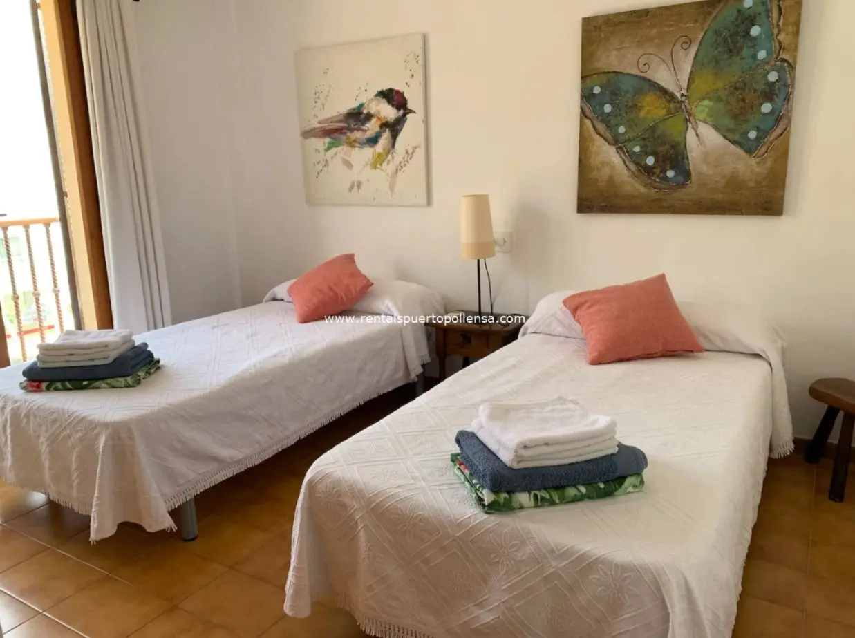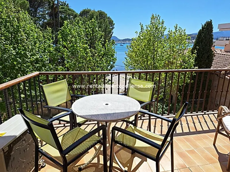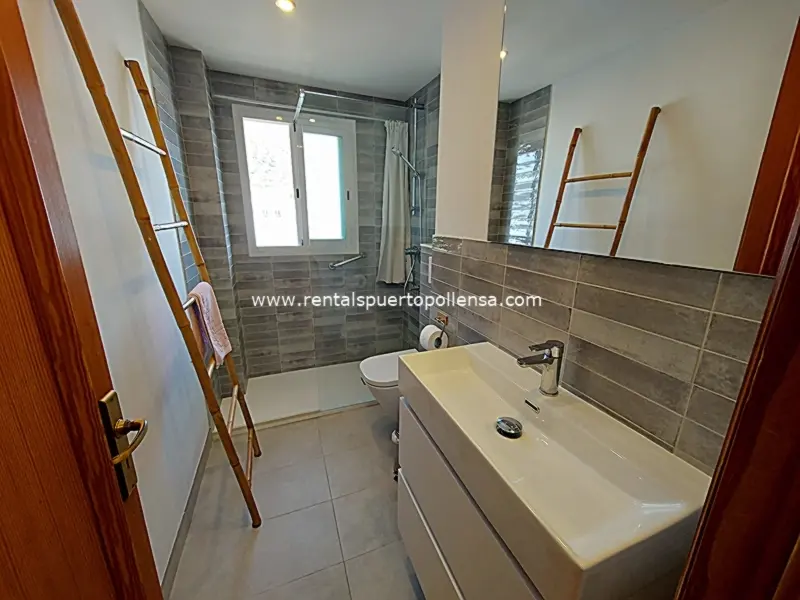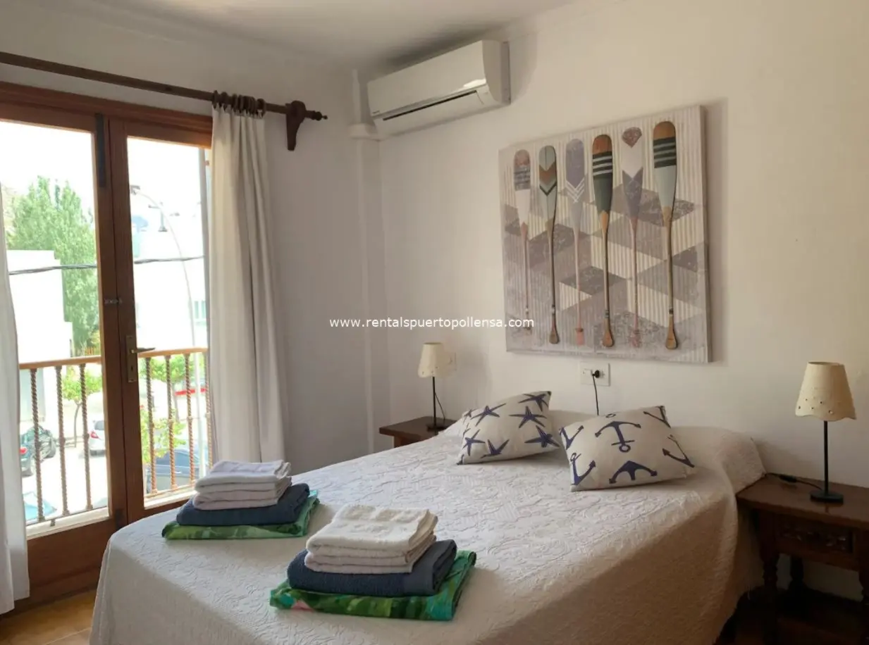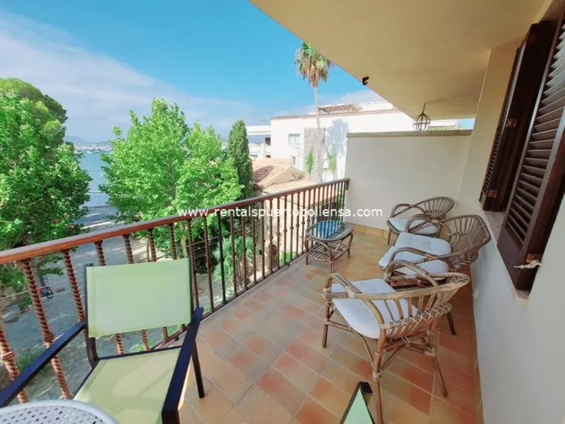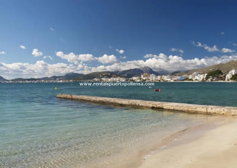 The Pine Walk beach is just 20 metres from the front of the building and the local supermarket 20 metres behind. A fifteen minute flat stroll takes you into the centre of the Puerto Pollensa. Inside the entrance hall leads to the lounge/diner (with air conditioning, television) and a seperate well equipped kitchen.