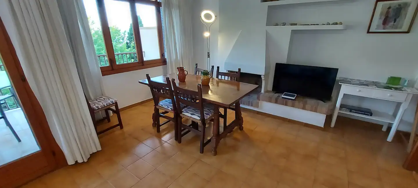The apartment has three bedrooms; an air conditioned double room, an air conditioned twin room and a single room. There are two newly refurbished shower rooms (one with a low ceiling).